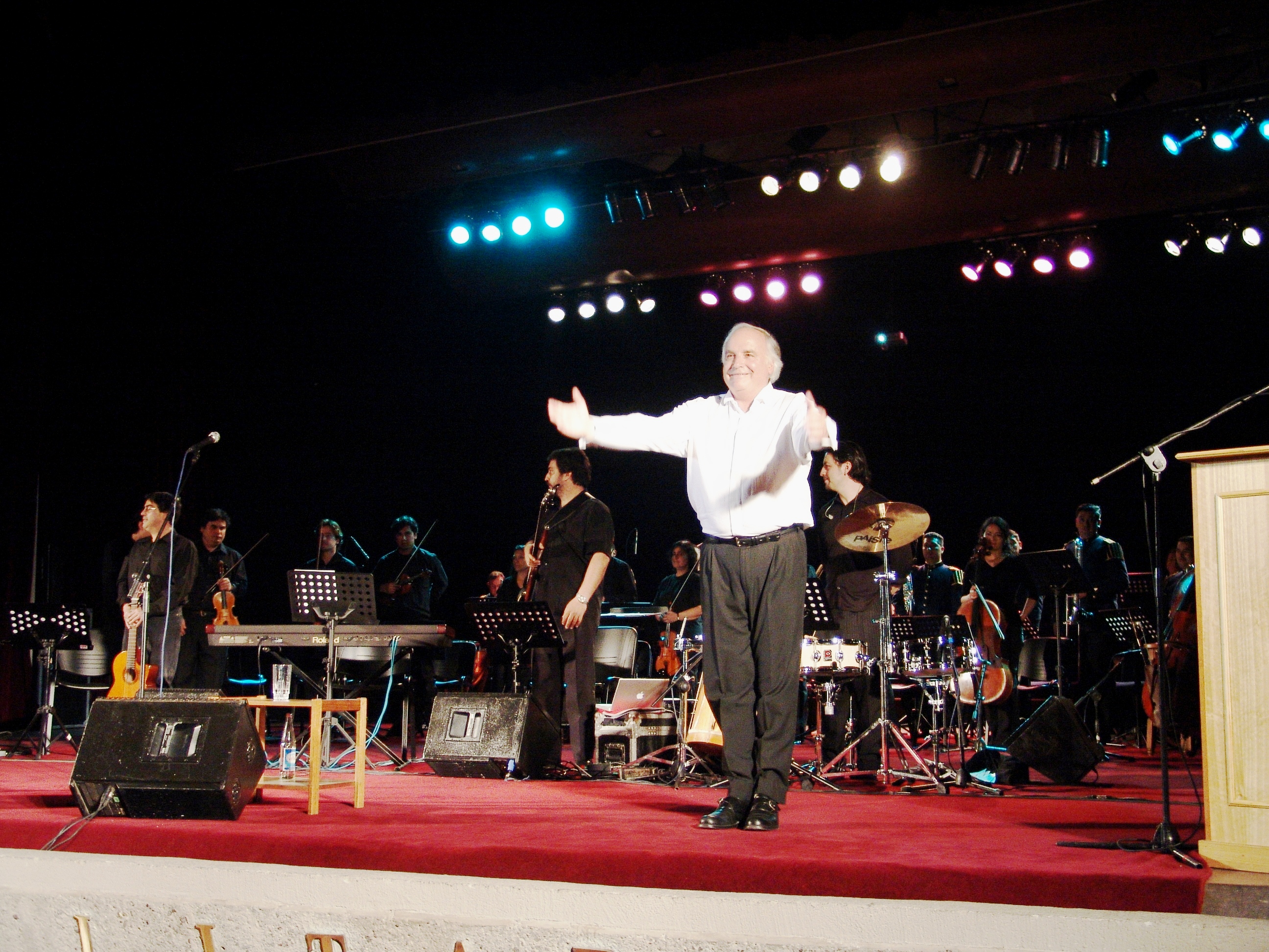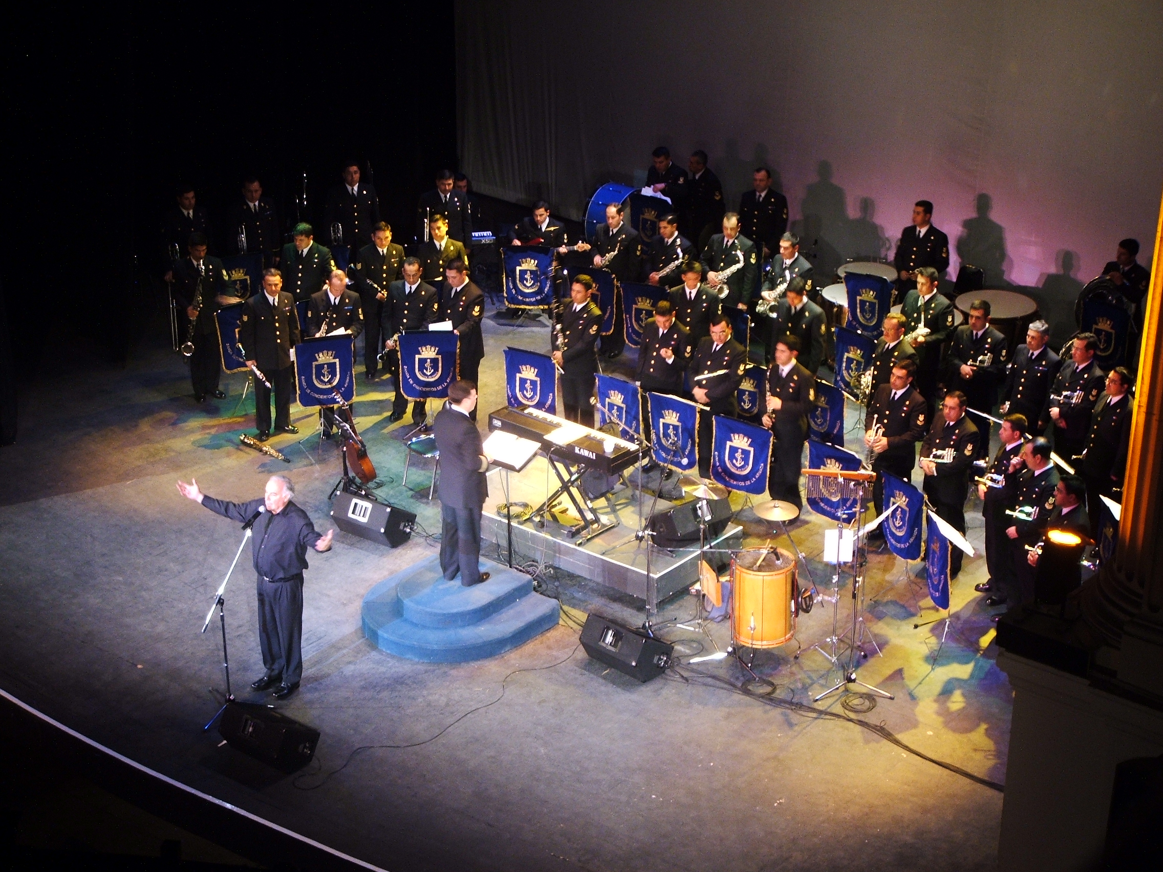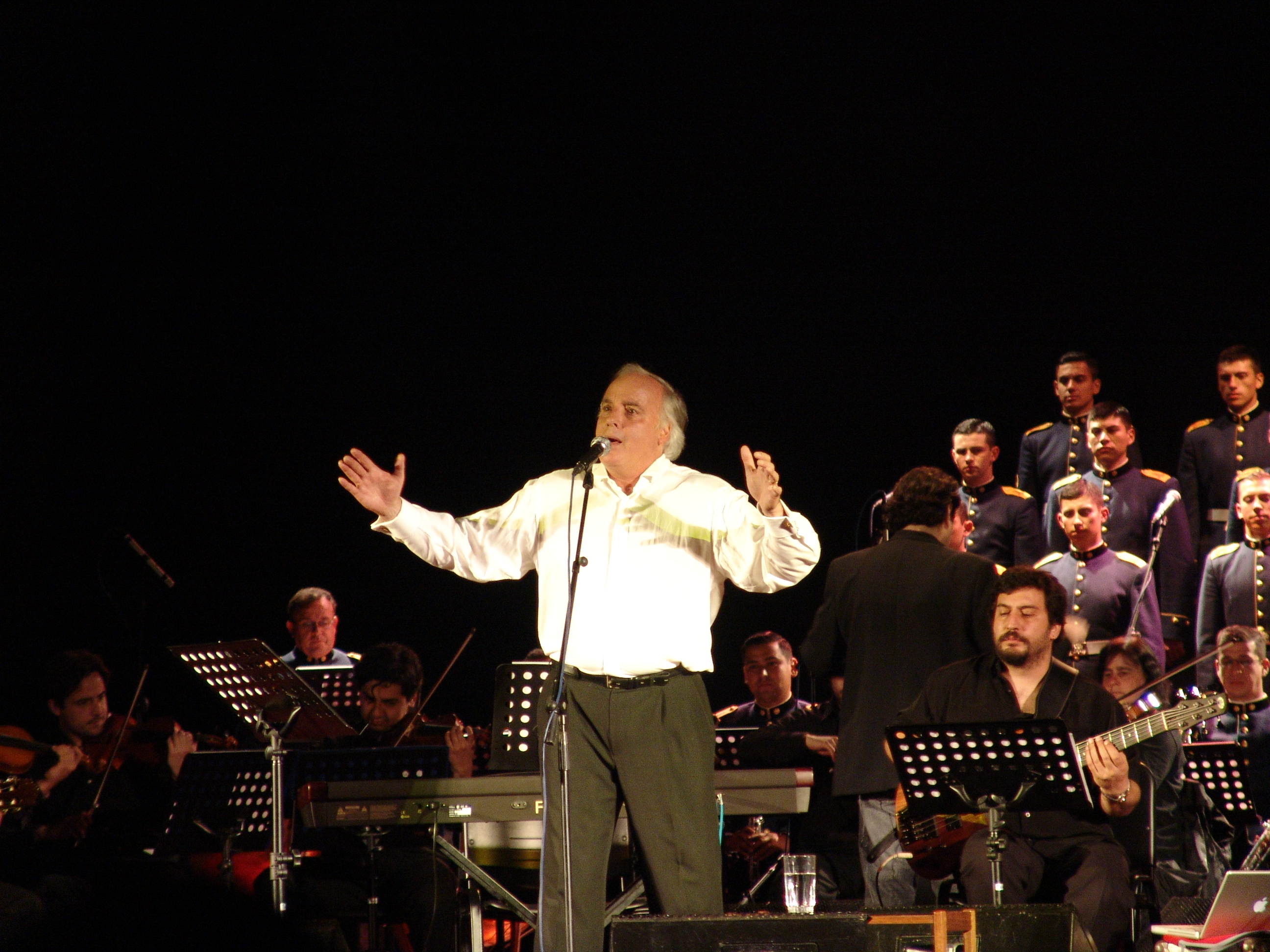 Al 7 de Linea Volumen II, La Nacion en Armas" Esta presentación tuvo como marco la gran Orquesta dirigida por el maestro René Calderón, compuesta por músicos de la sinfónica y la valiosa participación de musicos de la Banda de Concierto del Ejercito y del gran Coro del Escuela Militar, integrado por alumnos y alumnas cadetes. La proyeciónn de hermosos clips alusivos a las canciones con material gráfico de la época de la contienda, contribuyó a crear un ambiente de gran emoción en la audiencia que vibró con cada una de estas canciones . |